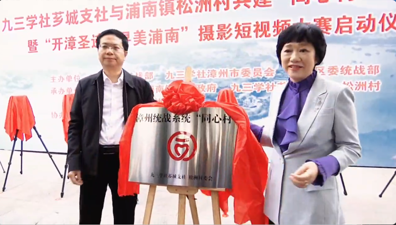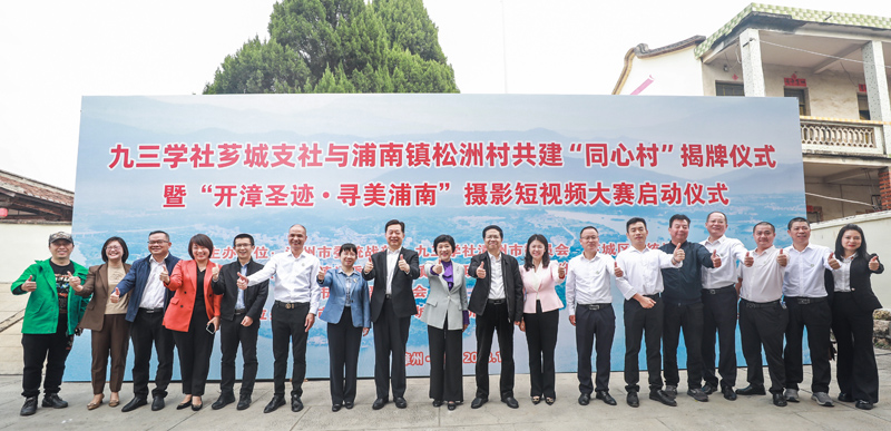 12月14日上午,九三学社芗城支社与浦南镇松洲村共建“同心村”揭牌仪式暨“开漳圣迹 • 寻美浦南”摄影短视频大赛启动仪式在漳州市芗城区浦南镇松洲书院举行。