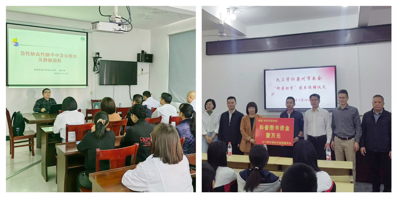 在白莲镇卫生院,郭永明为卫生院医卫人员和乡村医生作题为《急性缺血性脑卒中应急处置与静脉溶栓》培训讲座,解答指导脑卒中等老年常见突发疾病救治思路,帮助基层医卫工作者提升医疗业务水平。在白莲学校举办“九三学社专家同心科普行”活动,赖兵莲代表社泉州南安基层委向学校捐赠一万元,用于采购科普书籍,丰富孩子们课外阅读内容。魏青为学校初一师生作《我的网络安全探险日记-做聪明的数字小公民》专题科普讲座,提高孩子网络安全意识,养成良好的上网习惯,受到学校师生的热烈欢迎。(社省委会社会服务部 张玉智)