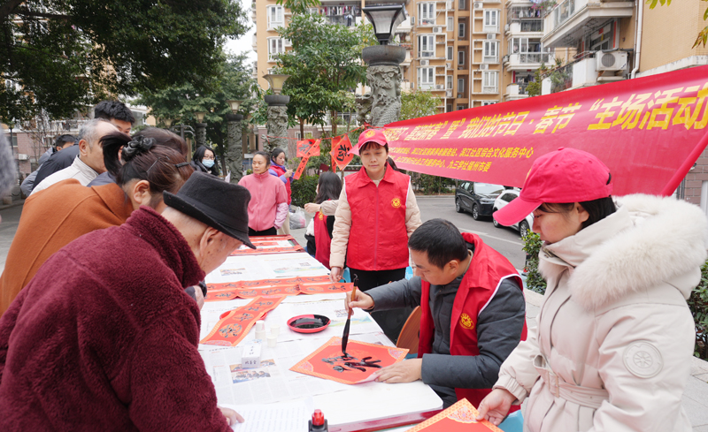 在鼓楼区湖前社区、台江区滨江社区等对口联系社区,苏小瑜带领社市委会机关干部,为困难群众送去年货等生活物资及慰问金,并组织“翰墨迎春·福送万家”春联书写活动,多名社内书法爱好者现场挥毫,为居民书写赠送寓意吉祥的春联和“福”字,现场洋溢着浓浓的年味与温情。(社福州市委会 彭丽娟)