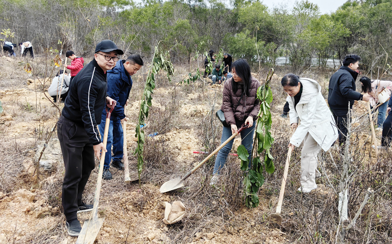 活动现场,大家热情高涨、配合默契,扶苗、培土、踩实、浇水,每一个环节都有条不紊。在大家的共同努力下,新栽种的60多株重阳木、黄花风铃木树苗挺拔而立,为初春的植树基地注入蓬勃生机。