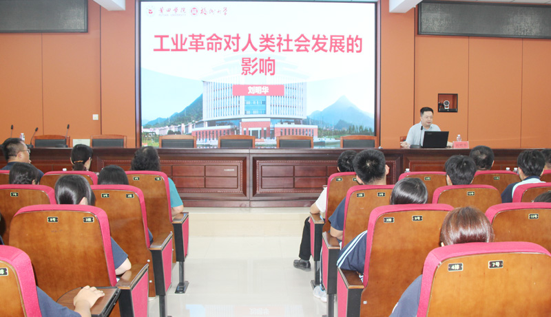 在图书捐赠仪式上,社省委社联专委会、福建精品建设工程有限公司捐赠1万元的爱国书籍,为同学们搭建起拓宽知识视野、丰富精神世界的“移动书架”。刘明华以《工业革命对人类社会发展的影响》为题,为师生带来一场深入浅出的专题科普讲座,结合历史脉络与现实案例,生动解读了工业革命对生产力变革、社会进步的深远影响,激发了同学们探索科学奥秘、投身创新实践的浓厚兴趣与深度思考。