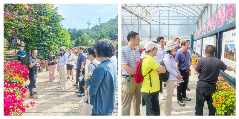 在国家三角梅种质资源库,厦门园林植物园三角梅研究推广中心主任周群详细介绍了资源库的建设背景、种质资源收集保存、科研攻关及成果转化等情况。社员们认真聆听讲解,就种质资源保护、产业化发展等问题与专家交流探讨。随后,大家前往多肉植物区,陈伯毅生动讲解了多肉植物的分类特性、生态适应机制及园林景观应用等知识。展区内形态各异的多肉植物品种及科学的栽培管理模式,让社员们直观感受到多肉植物在城市园艺景观中的独特价值。