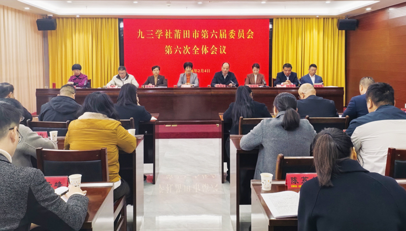 2月4日上午,九三学社莆田市第六届委员会第六次全体会议召开。九三学社莆田市委主委、莆田学院发展规划处处长郑洁红代表九三学社莆田市第六届常务委员会作2025年工作报告。中共莆田市委统战部常务副部长、一级调研员黄建国出席会议并致辞。莆田市人大常委会副主任、社市委原主委蔡国萍,市人大常委会原副主任、一级巡视员、社市委原主委王玉芳出席。社市委副主委谢金标、林岐峰、黄潮月、陈兆华参加。对口联系单位市农业农村局副局长郑文炉、市交通运输局二级调研员黄春发、市科技局副局长陈继宗、市医保局副局长柳建法应邀出席。